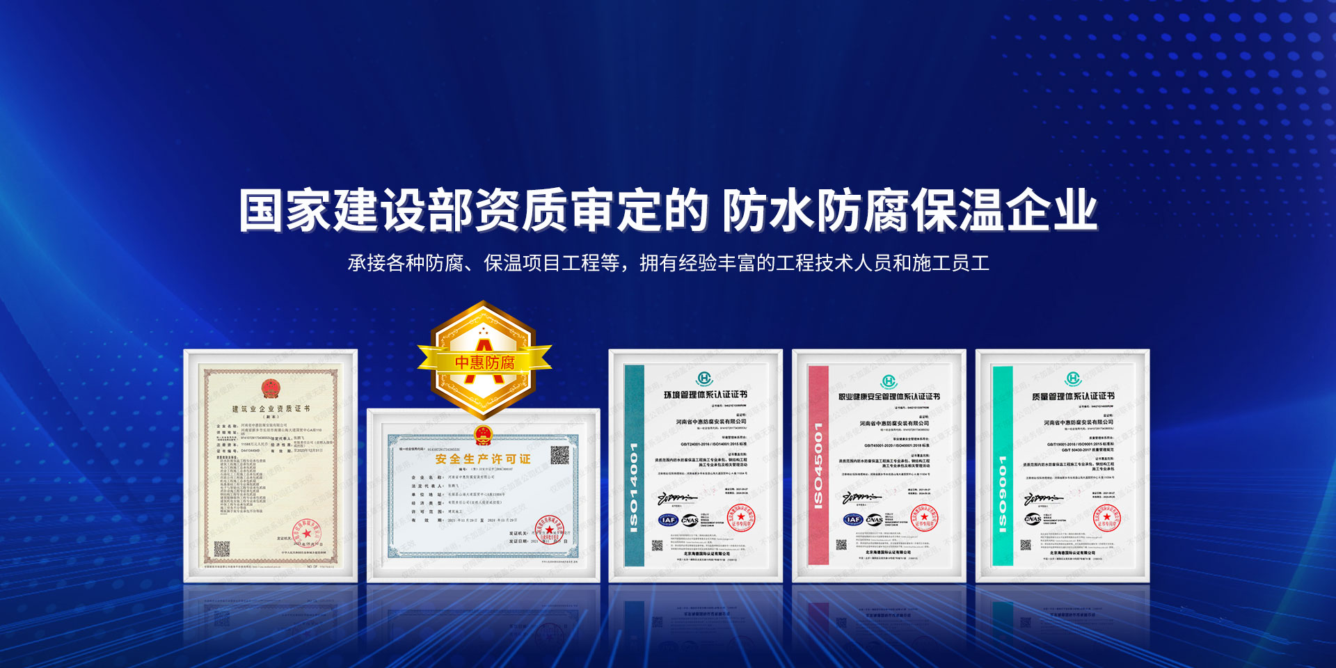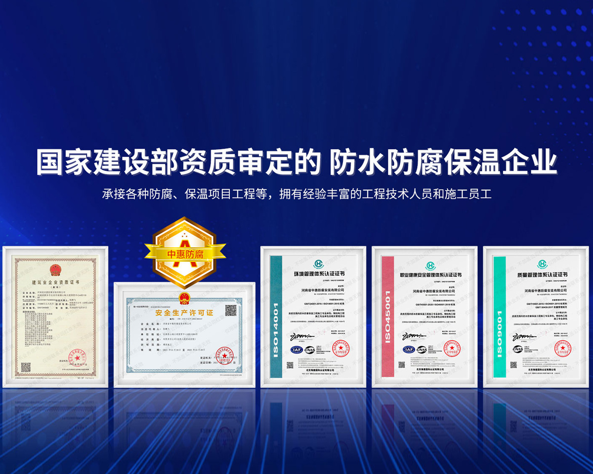 公司經營范圍:防水防腐保溫工程;消防設施工程;建筑裝修裝飾工程;建筑機電安裝工程;電力工程;建筑工程;石油化工工程;工業清洗工程;油罐清洗工程;鋼結構工程;環保工程;模板腳手架工程;電纜防火封堵、防污閃噴涂、外墻外保溫工程;各類施工勞務作業;設備維修、船舶鉚焊、涂裝;電力工程材料、建材、防水材料、防火材料、防腐保溫材料銷售,并相繼通過了GB/T19001-2008idtISO9001:2008GB/T50430-2007質量管理體系認證證書。GB/T24001-2004idtISO14001:2004環境管理體系認證證書。GB/T28001-2011idtOHSAS18001:2007職業健康安全管理體系認證證書。公司是中國防腐蝕于防護協會、中國施工企業管理協會、電力協會和中國鋼結構防水協會會員單位。 公司的經營業務涵蓋了石油、化工、電力、冶金、煤炭、船舶、國防、燃氣、水利、環保、交通運輸、航空及國防軍工和輕紡市政等行業的防腐保溫絕熱設備。鋼結構安裝、防火、防水、金屬噴鍍、聚脲噴繪、陰極保護、防滲透堵漏、玻璃鋼及各種磚版材料襯里、橡膠襯里、煙氣硫和耐酸溶劑腐蝕等工程施工。公司連續十年榮獲“省市先進施工企業”“安全生產先進單位”“重合同,守信用企業”和“AA***資質企業”的稱號。2000年被命名為市級文明單位,2002年被國家工商行政管理局命名為“重合同,守信用的企業”、被中國工業防腐蝕技術協會命名為“防腐蝕企業,能源節約及環境保護領域有豐富的經驗和***的業績。工程一次交驗合格率100%。其中攀枝花鋼鐵公司煉鐵廠四號高爐及熱風爐防腐工程、上海寶鋼公司煤氣柜防腐工程、撫順石油一廠裝置防腐項目、齊魯石化公司稀烴廠高塔防腐工程、吉林化學工業公司煉油廠油罐防腐工程、天津石化熱電廠六號爐頂棚聯絡管保溫工程、大慶油田(太倉)力神泵業工程、中國化學工程第十一建設工程、中原油田勘探局工程、中國石化銷售有限公司華北分部、魯皖輸油管道工程、貴州開磷息烽合成氨工程、陜西黃陵煤化工程、中國石油天然氣西部管道塔里木輸油工程、邯鋼集團邯寶鋼鐵公司煉鐵工程、德州供電工程、吉寶(南通)船廠工程,偃師華潤熱力工程、鄭州熱力總公司。 河南省中惠防腐安裝有限公司愿以豐富的施工經驗,***的技術,***的設備,***的管理,***的服務,竭誠為國內外廣大的用戶提供***滿意、******的工程作品。 我公司愿與國內外同仁一道,團結協作,共同推進防腐蝕行業發展! 公司地址:河南省長垣縣建設路北段360號 固定電話:0373-8866488 郵編:453400 網址:http://www_zhff_com_cn.qihctech.com